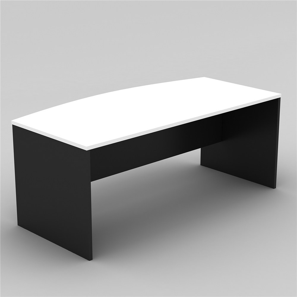 OM Bow Front Desk 2100W x 750-900D x 720mmH White And Charcoal