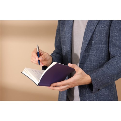 Fitted with Quinkflow ballpoint refill for optimal ink flow and a smooth writing experience. Blue ink, medium tip. Also accepts Parker gel refills.