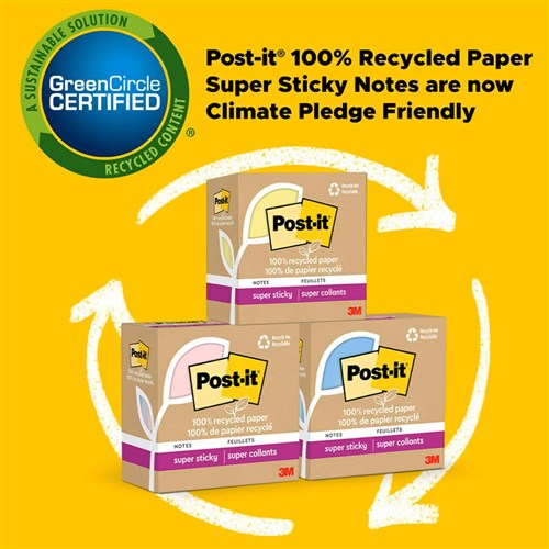 Post-It 654R-12SST Super Sticky Notes Recycled 76mm x 76mm Oasis Pack Of 12