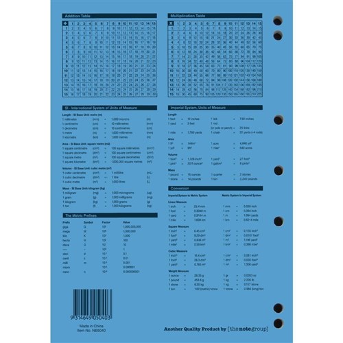 4 year calendar, activity page, maths tables & red margin.