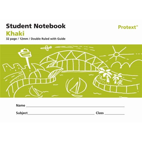Protext Student Note Book 240 x 175mm Double Ruled 12mm/Guide 32 Page Khaki