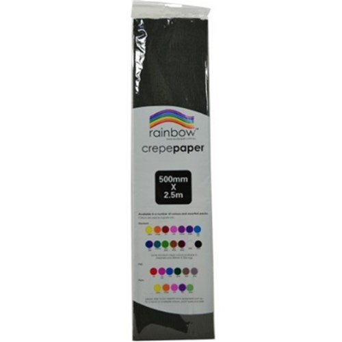 RAINBOW CREPE PAPER 500mm x 2.5m Black Pk12