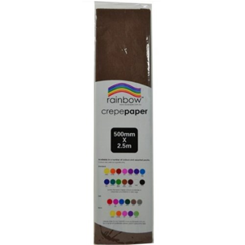 RAINBOW CREPE PAPER 500mm x 2.5m Dark Brown Pack 12