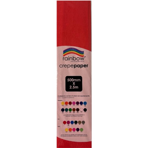 RAINBOW CREPE PAPER 500mm x 2.5m Red Pack of 12
