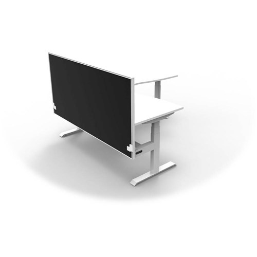 Includes pinnable privacy screen in black fabric with matching white powder coated frame. 900mm H x 30mm T.