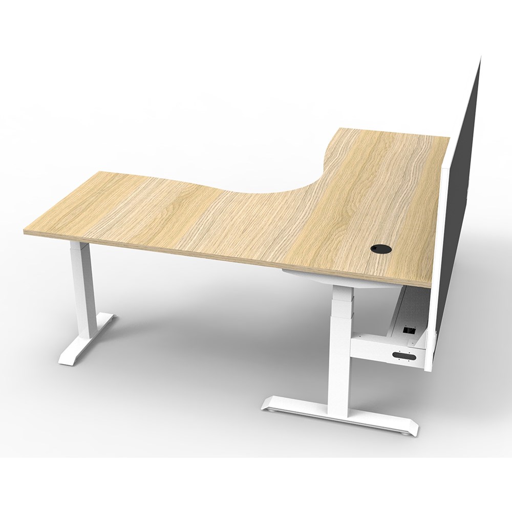 Dual Motor 3 stage motorised legs. Corner Workstation with Cable Tray and Screen.