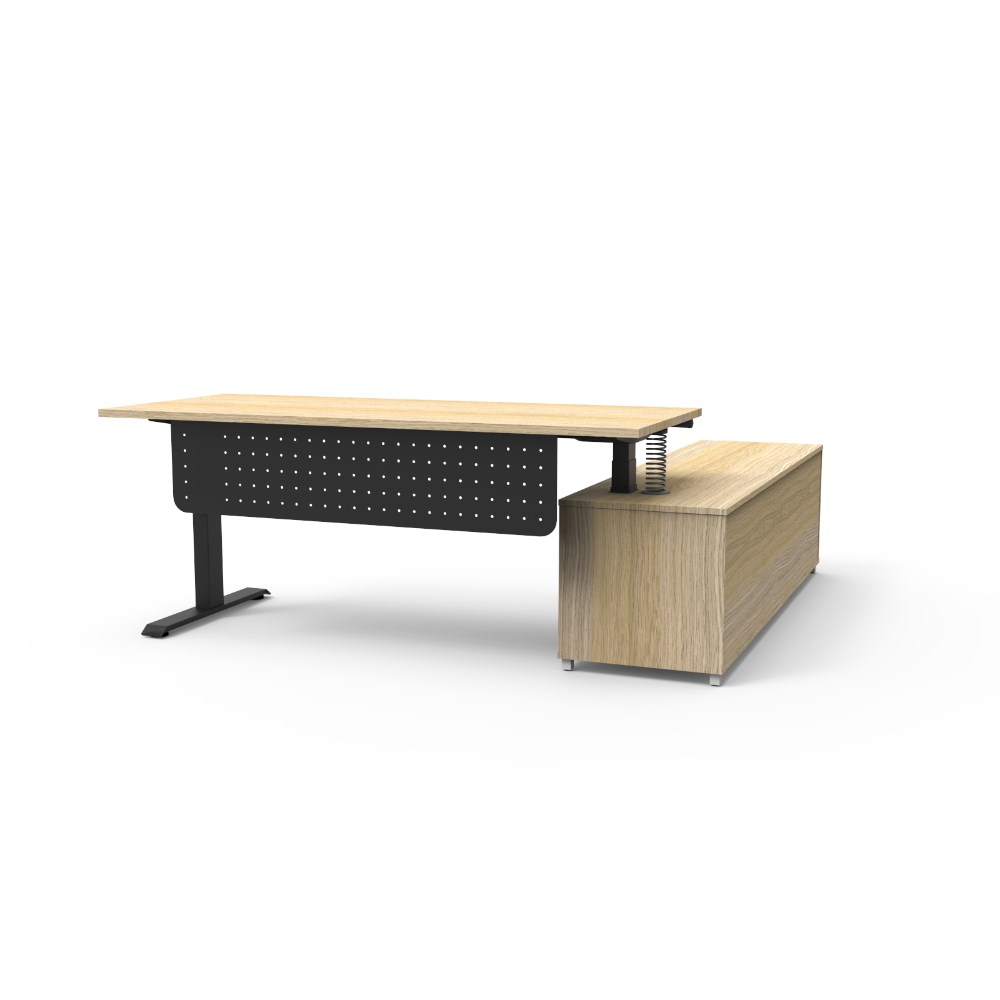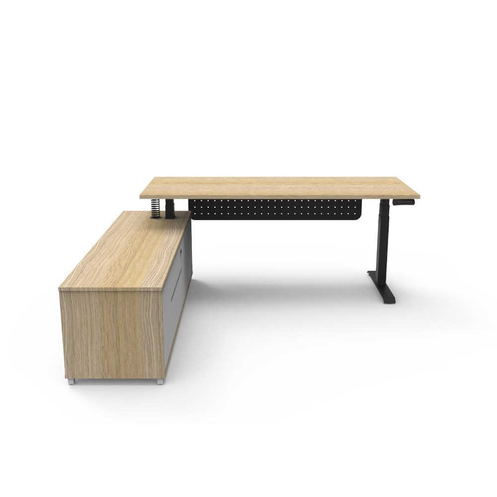 Rapidline Boost+ Executive Desk + LHS Cabinet+Panel 2020W x 1936D x 620-1270mmH Oak/Blk