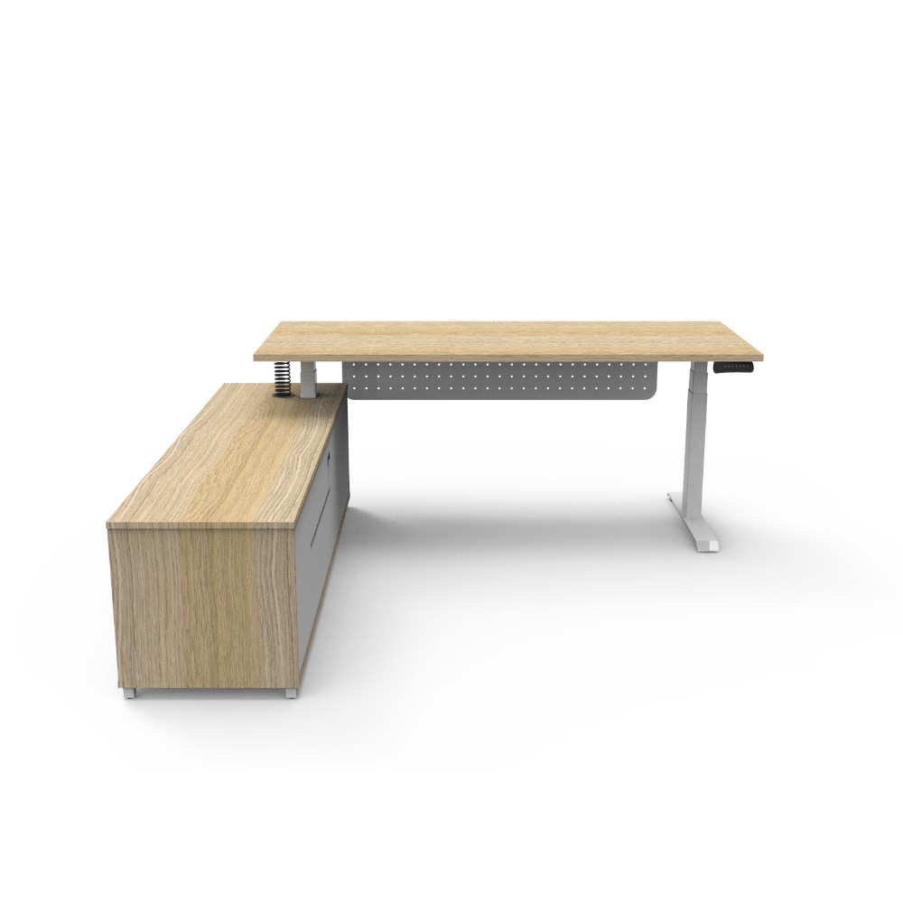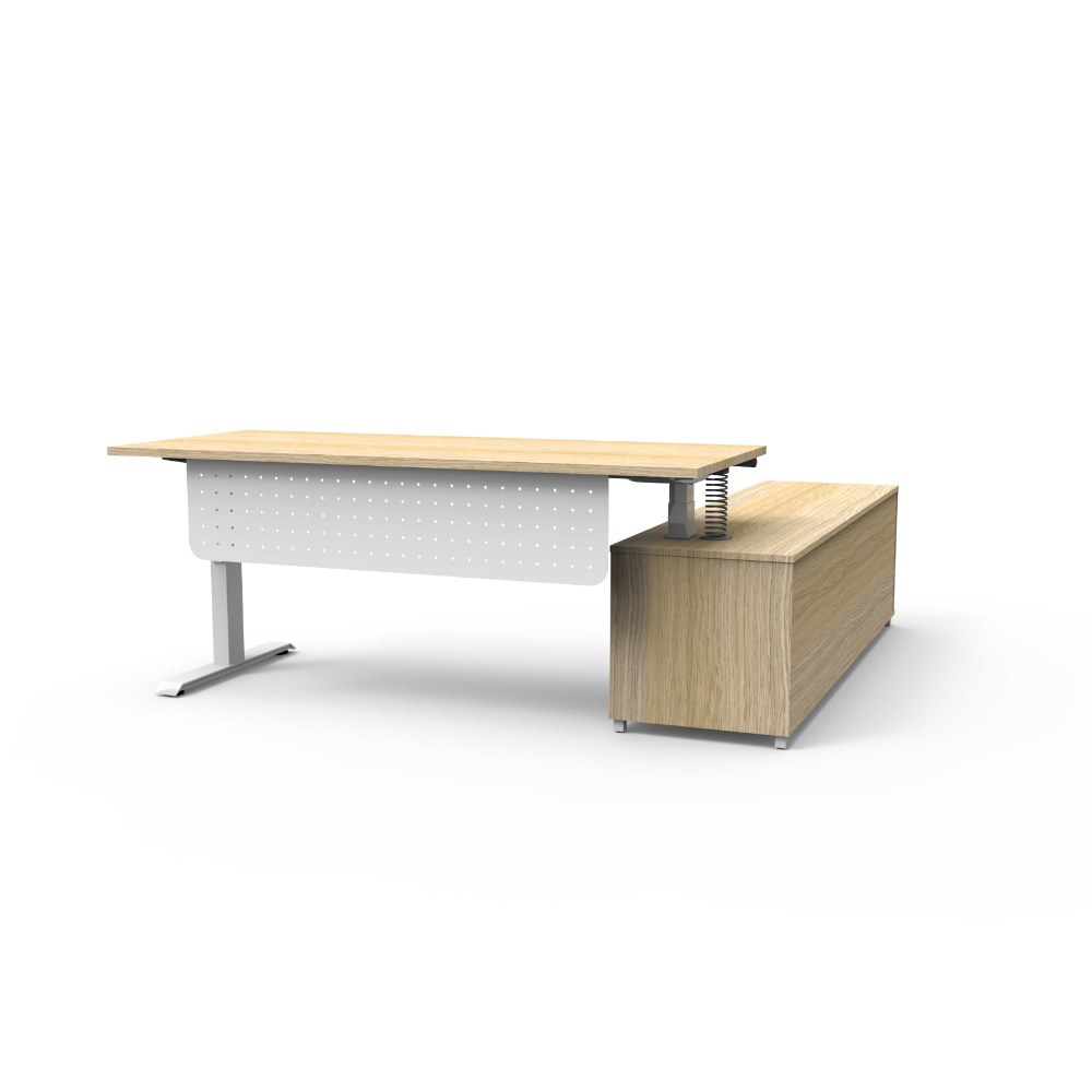 Rapidline Boost+ Executive Desk + LHS Cabinet+Panel 2020W x 1936D x 620-1270mmH Oak/Wht