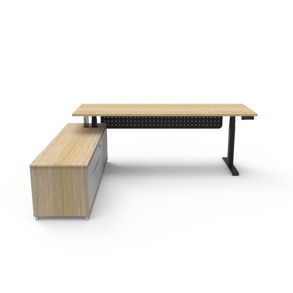 Rapidline Boost+ Executive Desk + LHS Cabinet+Panel 2270W x 1936D x 620-1270mmH Oak/Blk