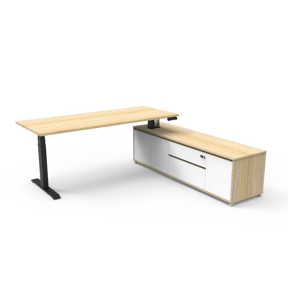 Rapidline Boost+ Executive Desk + RHS Cabinet 2020W x 1936D x 620-1270mmH Oak/White