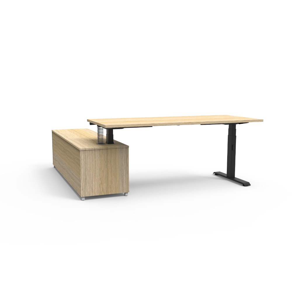 Rapidline Boost+ Executive Desk + RHS Cabinet 2020W x 1936D x 620-1270mmH Oak/Black