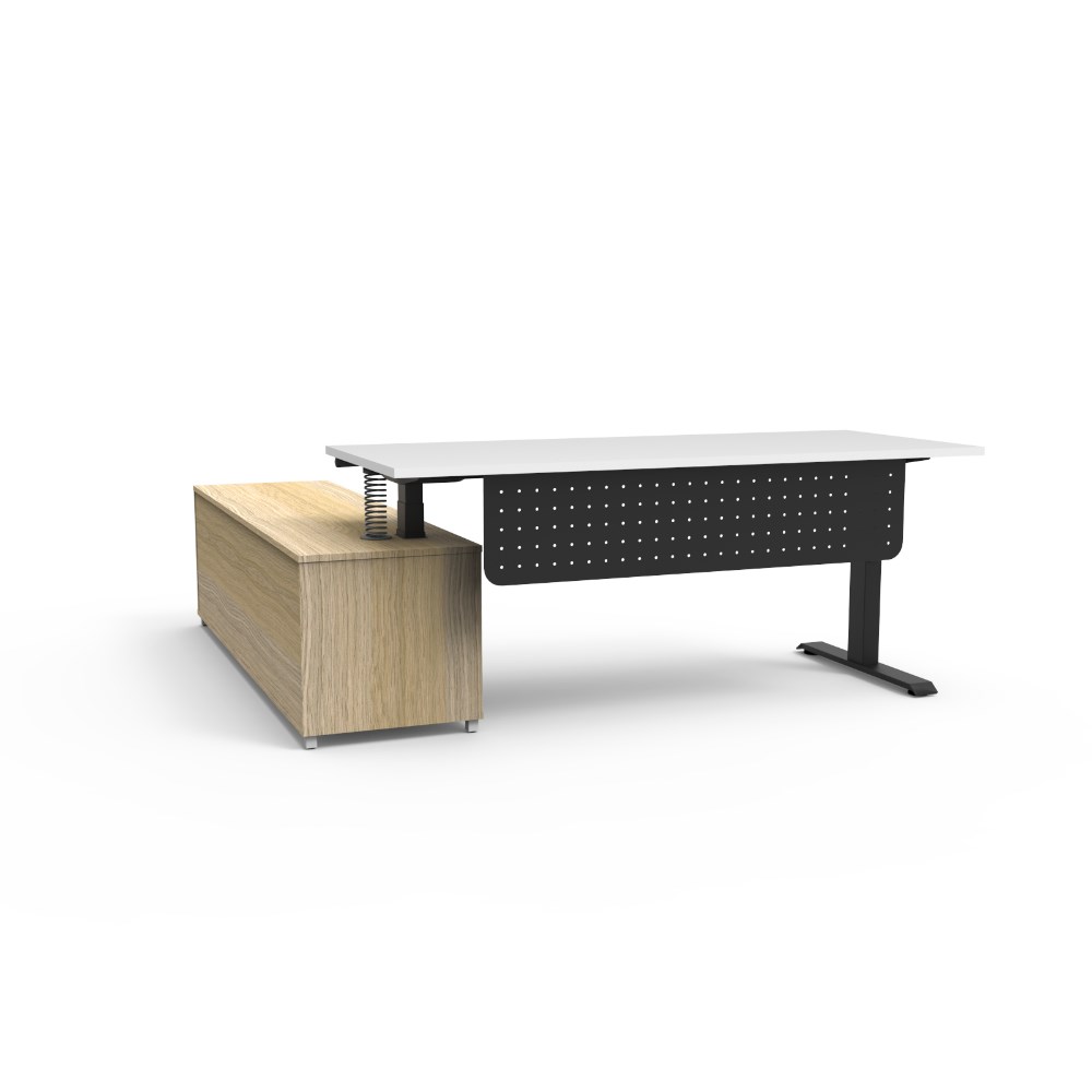 Rapidline Boost+ Executive Desk + RHS Cabinet+Panel 2020W x 1936D x 620-1270mmH Wht/Blk