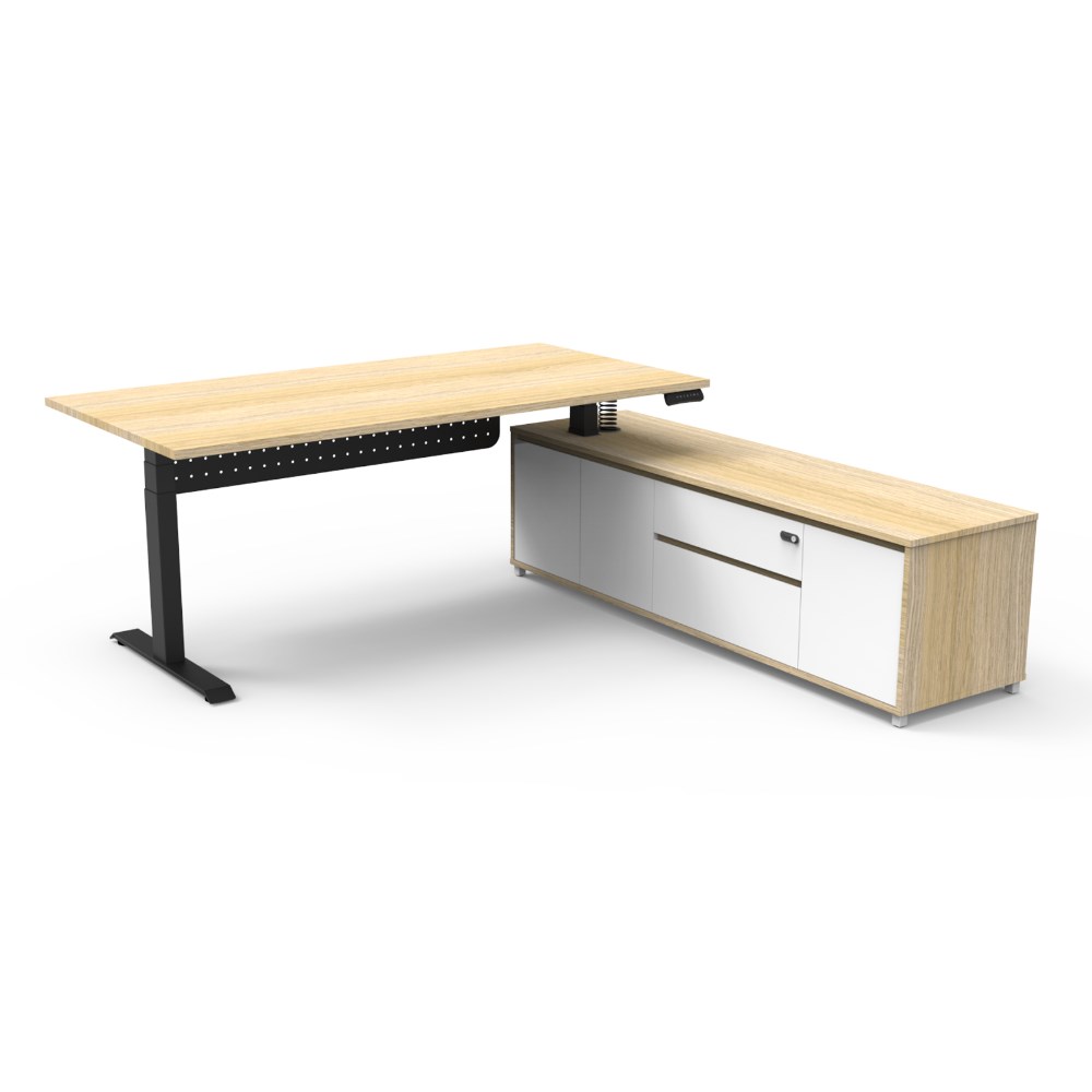 Rapidline Boost+ Executive Desk + RHS Cabinet+Panel 2020W x 2011D x 620-1270mmH Oak/Blk