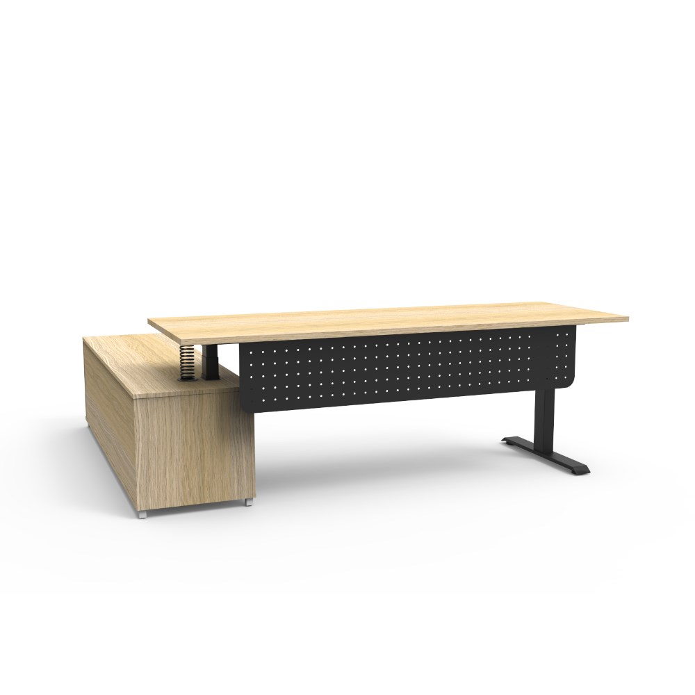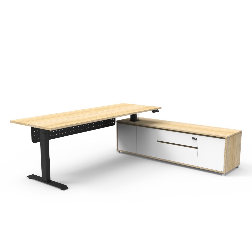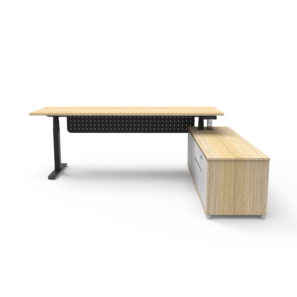 Rapidline Boost+ Executive Desk + RHS Cabinet+Panel 2270W x 1936D x 620-1270mmH Oak/Blk