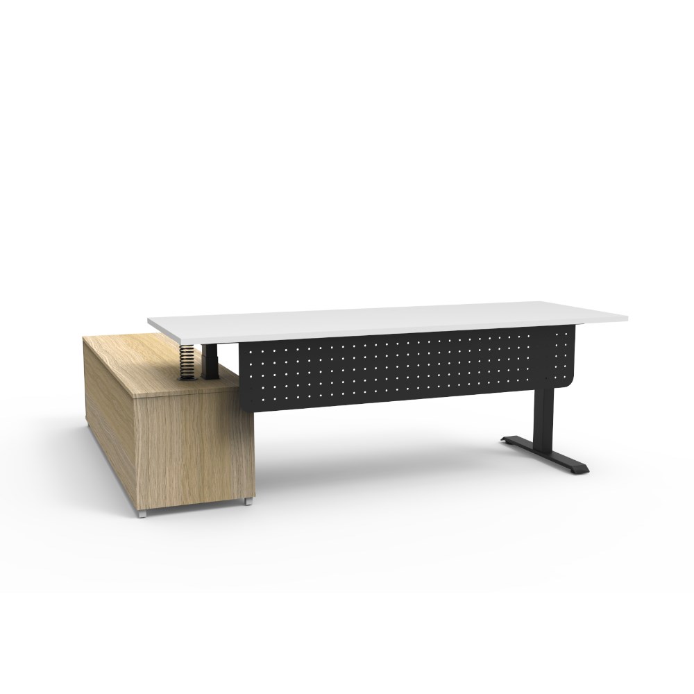 Rapidline Boost+ Executive Desk + RHS Cabinet+Panel 2270W x 1936D x 620-1270mmH Wht/Blk