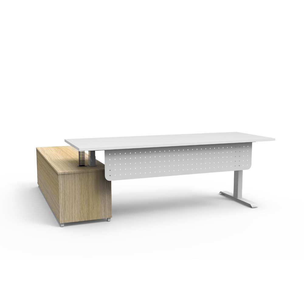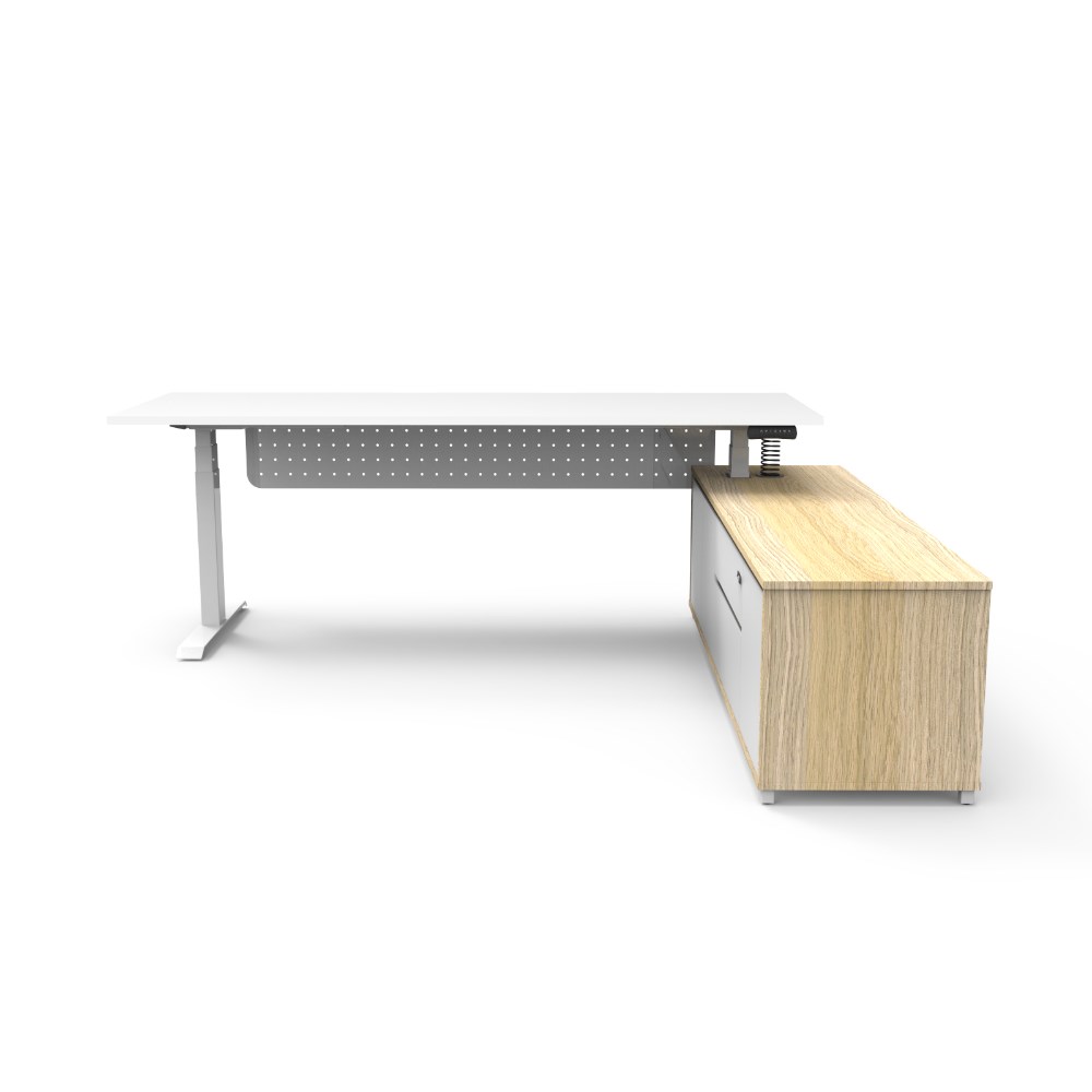 Rapidline Boost+ Executive Desk + RHS Cabinet+Panel 2270W x 1936D x 620-1270mmH Oak/Wht