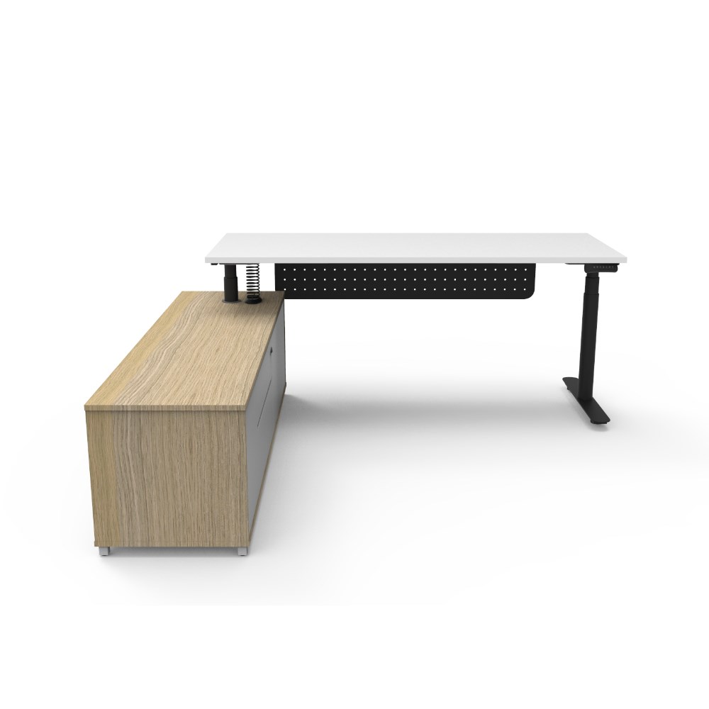 Rapidline Halo+ Executive Desk + LHS Cabinet + Panel 2020W x 1936D x 620-1270mmH Oak/White