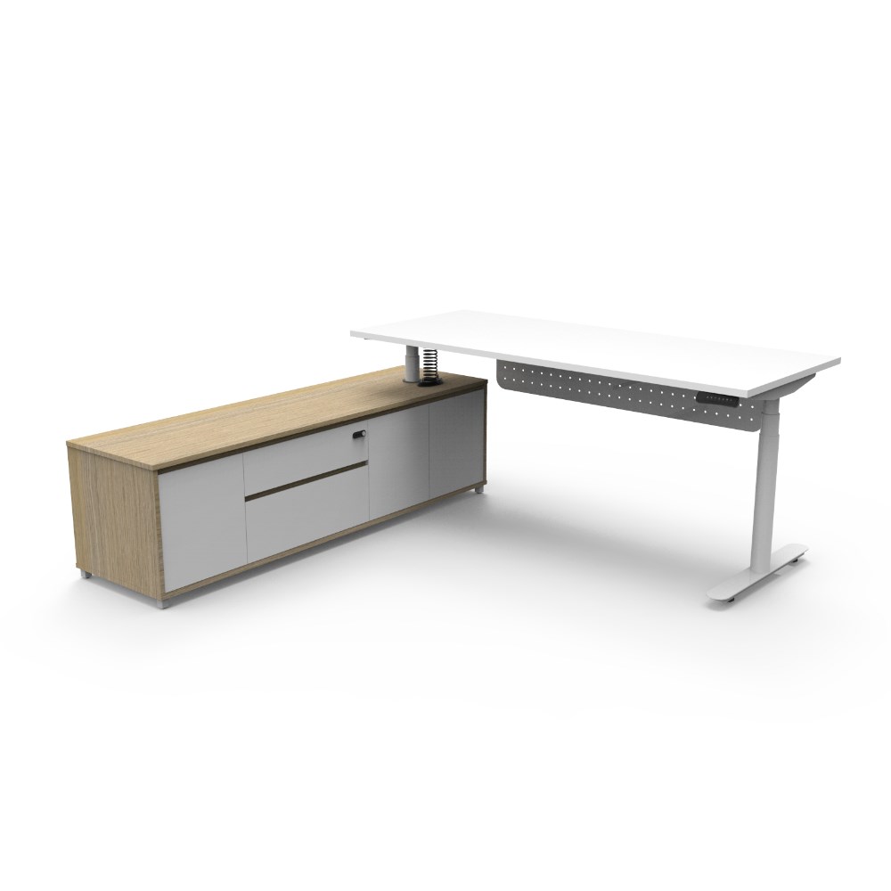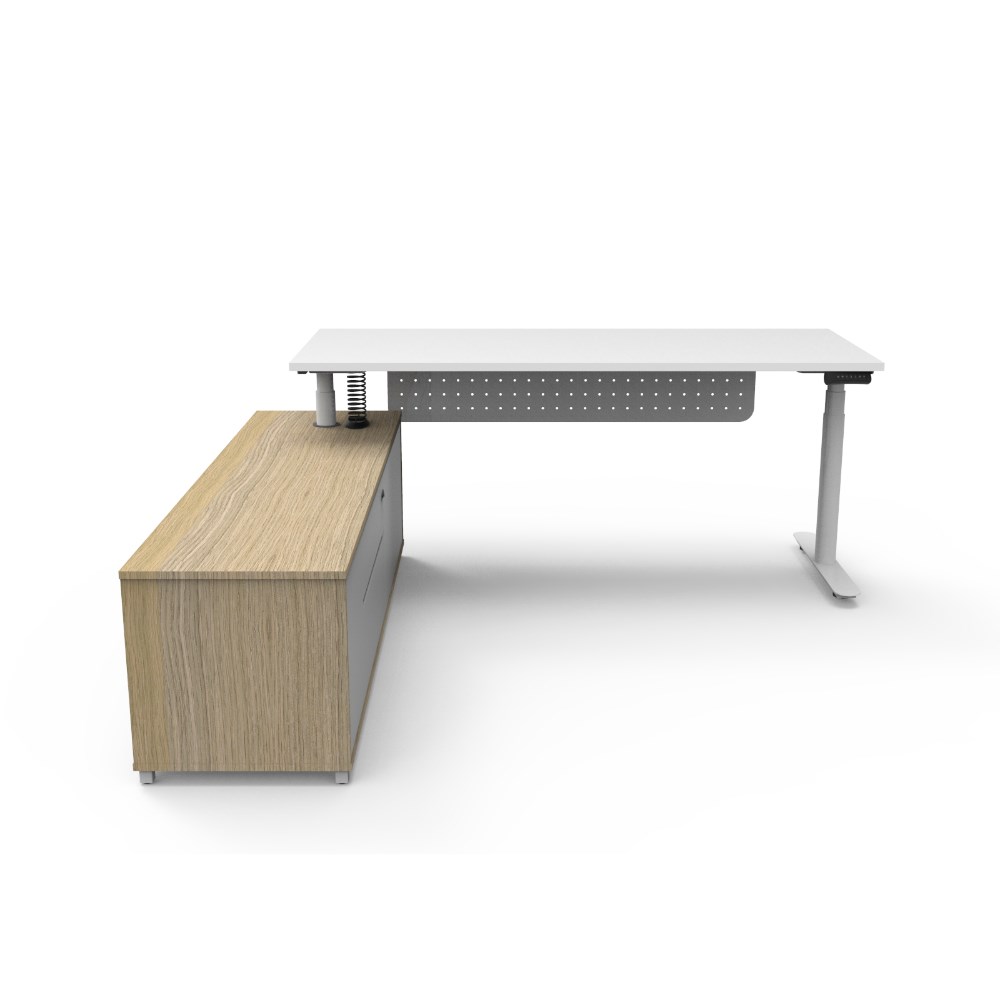Rapidline Halo+ Executive Desk + LHS Cabinet + Panel 2020W x 1936D x 620-1270mmH Oak/White