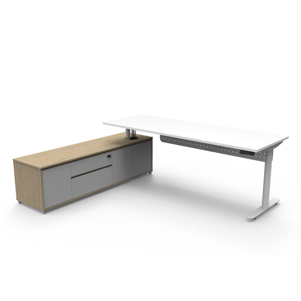 Rapidline Halo+ Executive Desk + LHS Cabinet + Panel 2270W x 1936D x 620-1270mmH White/Wht