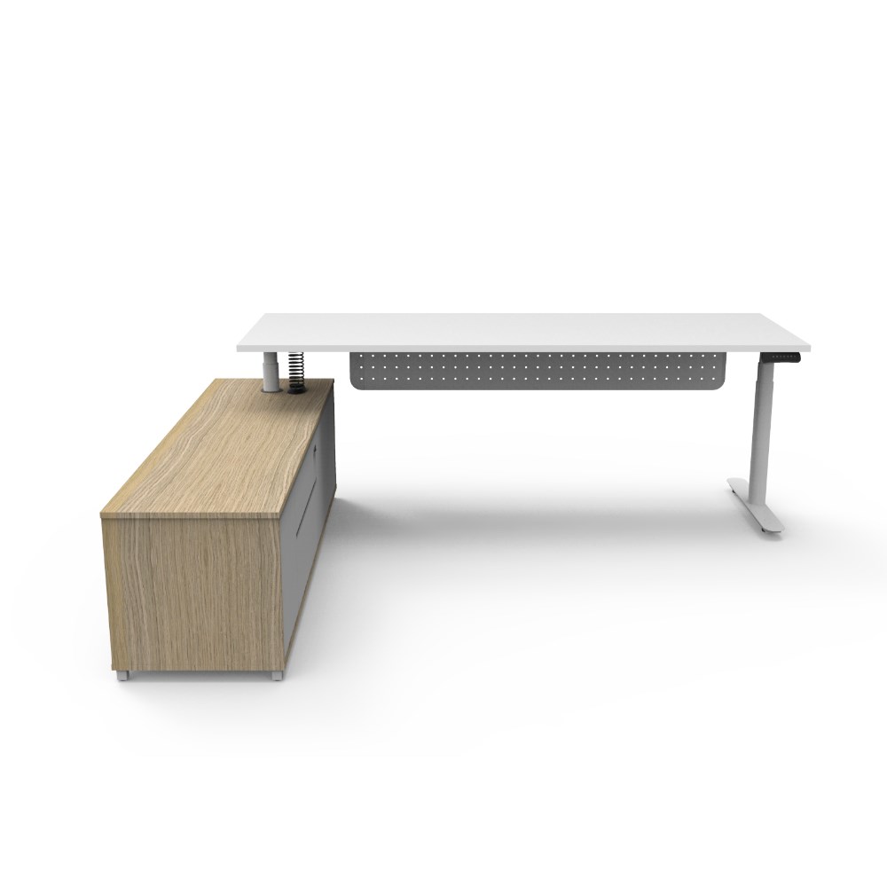 Rapidline Halo+ Executive Desk + LHS Cabinet + Panel 2270W x 1936D x 620-1270mmH Oak/White