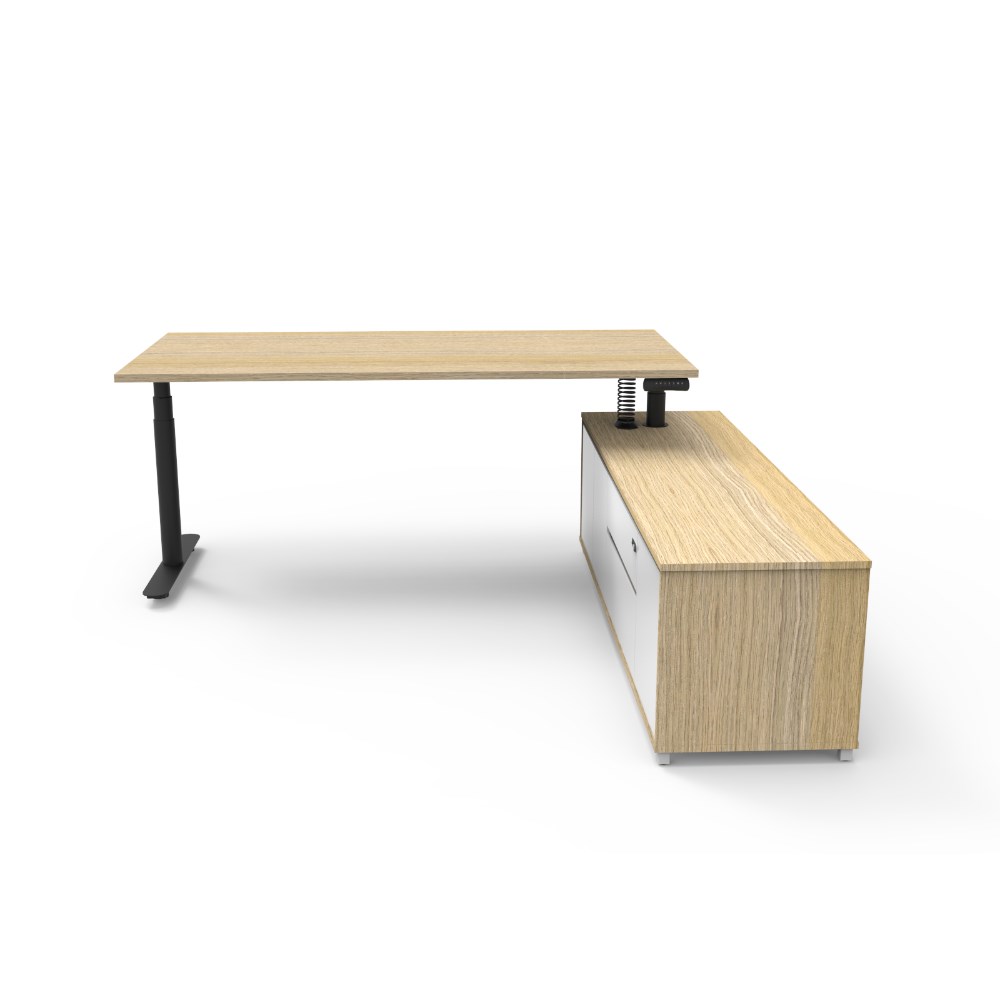 Rapidline Halo+ Executive Desk + RHS Cabinet 2020W x 1936D x 620-1270mmH Oak/Black
