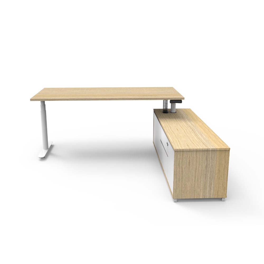 Rapidline Halo+ Executive Desk + RHS Cabinet 2020W x 2011D x 620-1270mmH Oak/White