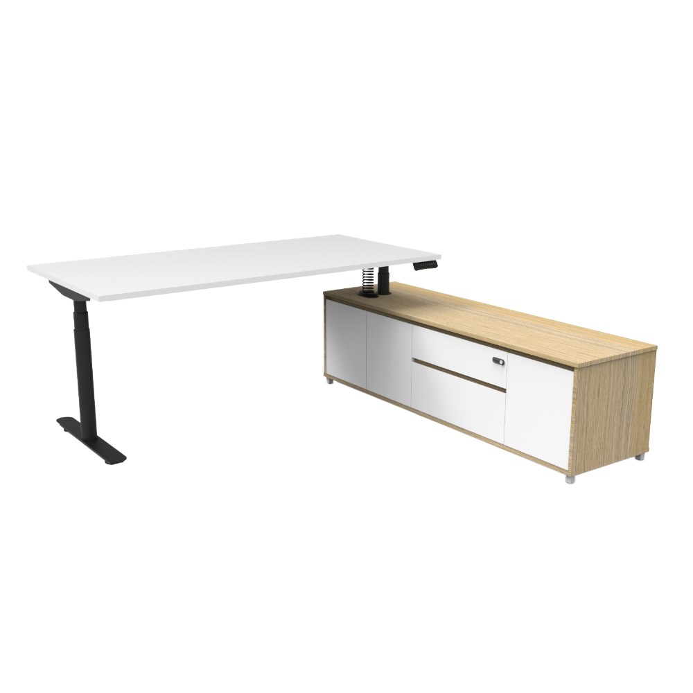 Rapidline Halo+ Executive Desk + RHS Cabinet 2020W x 2011D x 620-1270mmH Oak/Black