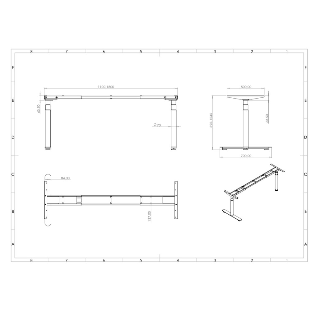 Frame Dimensions: 1100mm-1800W x 700D x 595-1245mmH.