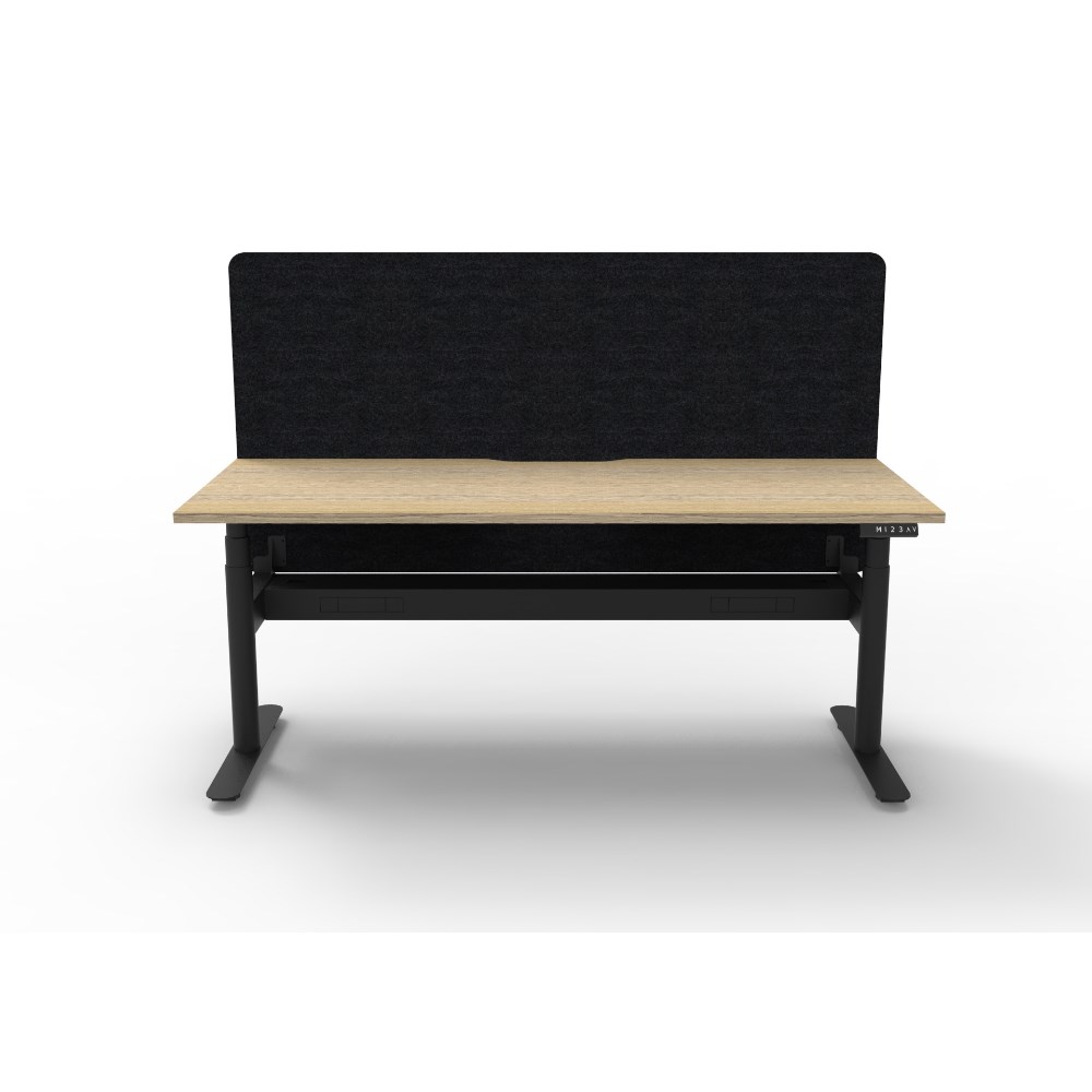 Rapidline Halo+ Single Sided Workstation + Black Eco Screen +Tray 1500Wx620-1270mmH Oak/Bl