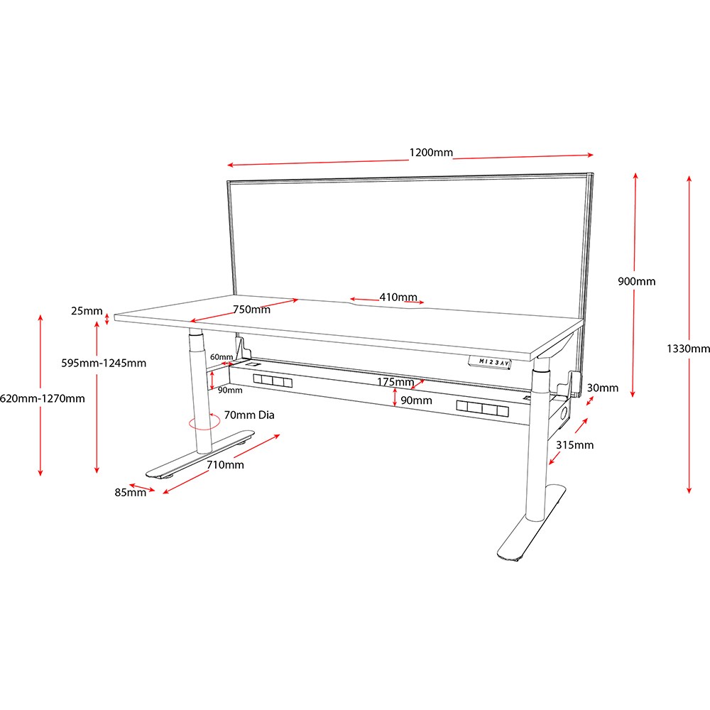Unit Dimension: 1200mm W x 750mm D x 620-1270mm H.