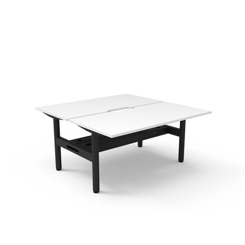 Natural White top Black Satin frame. Double sided workstation with cable tray.