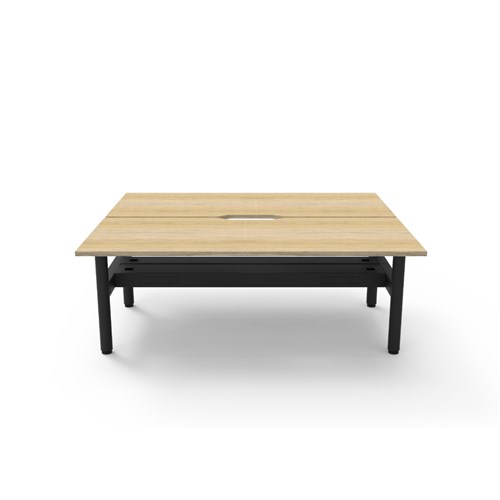 Natural Oak top Black Satin frame. Double sided workstation with cable tray.