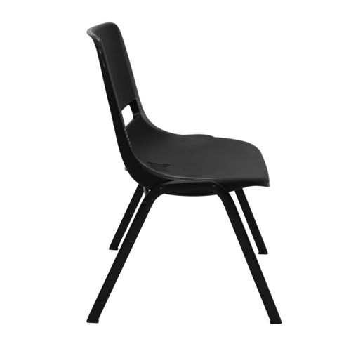 Strong durable stacking chair with polypropylene shell and black powder coated underframe.