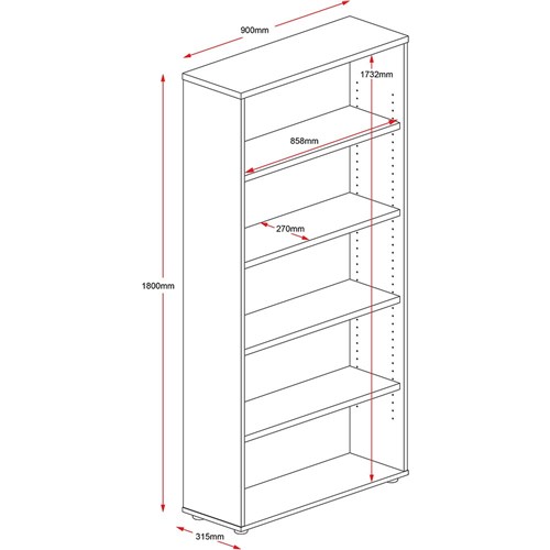 Rapidline Rapid Worker Bookcase 4 Shelves 900W x 315D x 1800mmH Cherry And Ironstone