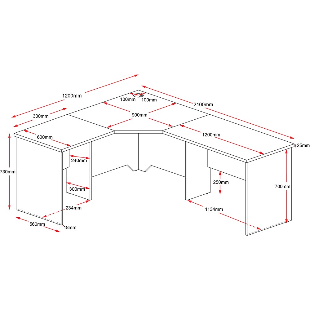 Rapidline Rapid Worker Corner Workstation 1200/2100W x 600D x 730mmH Cherry And Ironstone