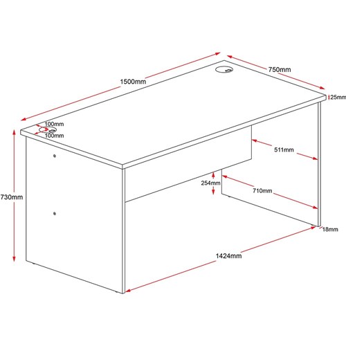 Rapidline Rapid Worker Desk 1500W x 750D x 730mmH Cherry and Ironstone