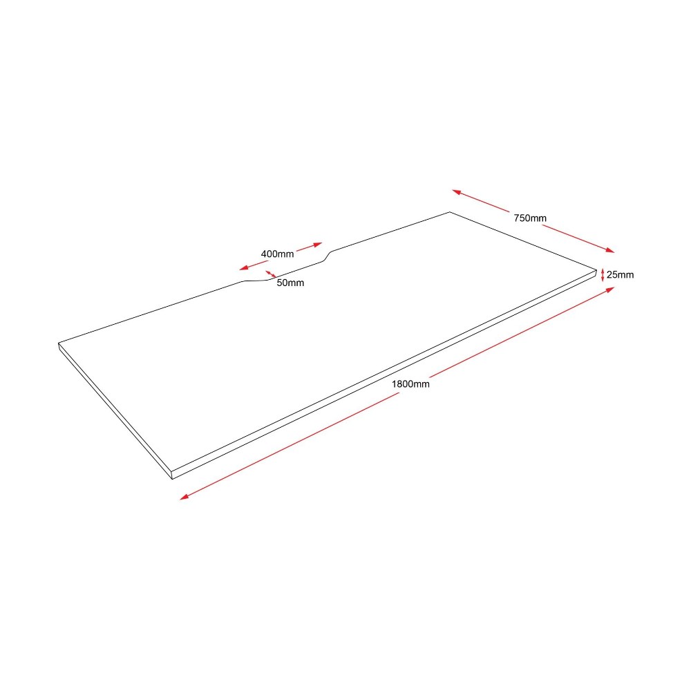50mm Depth Scallop cut out to rear for cable access.