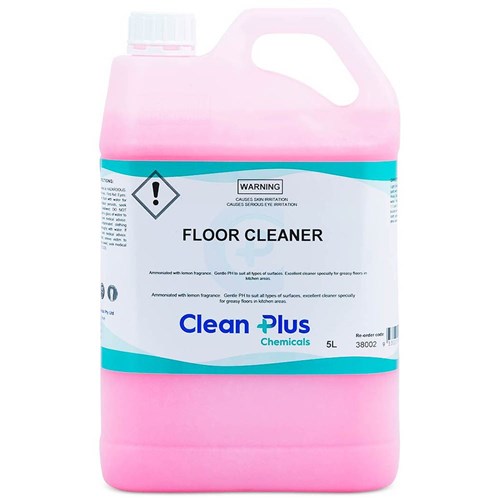 Floor cleaner is a viscous pink liquid with a lemon and ammonia odour.