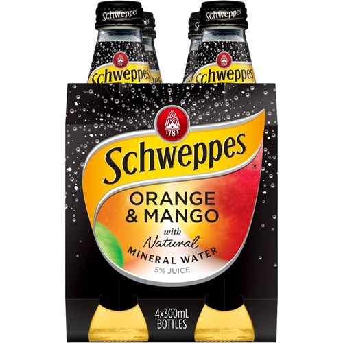 Blended with mineral water sourced from some of Australia?s finest springs, Schweppes Orange & Mango Mineral Water offers pure, fruity hydration.