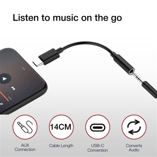 Shintaro Headphone Jack USB-C To AUX 3.5mm Adaptor Black