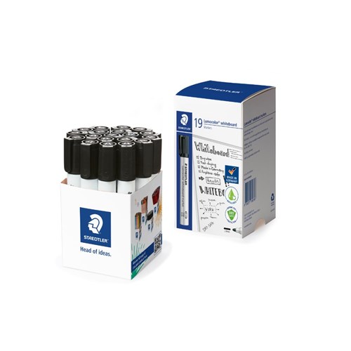Staedtler 351 Lumocolor Whiteboard Marker Bullet 2mm Black Cup of 19