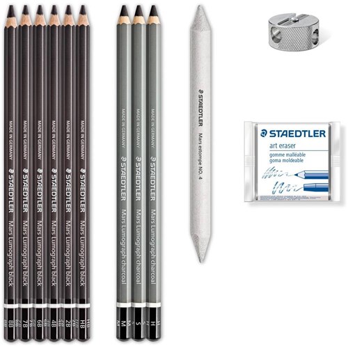 Pack includes the following: Mars Lumograph charcoal 100C & Mars Lumograph black 100B to get very expressive results with just a few pencil strokes