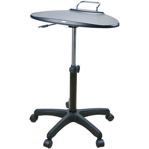 A single lever gas assist height adjustable polypropylene platform large enough to suit a 17-inch laptop.