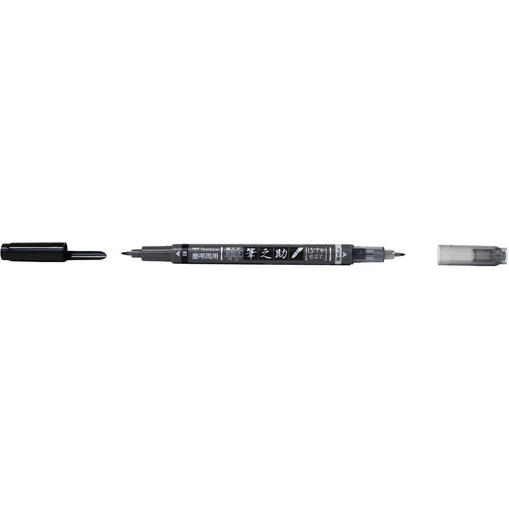 Tombow Fudenosuke Pen Twin Tip Black & Grey