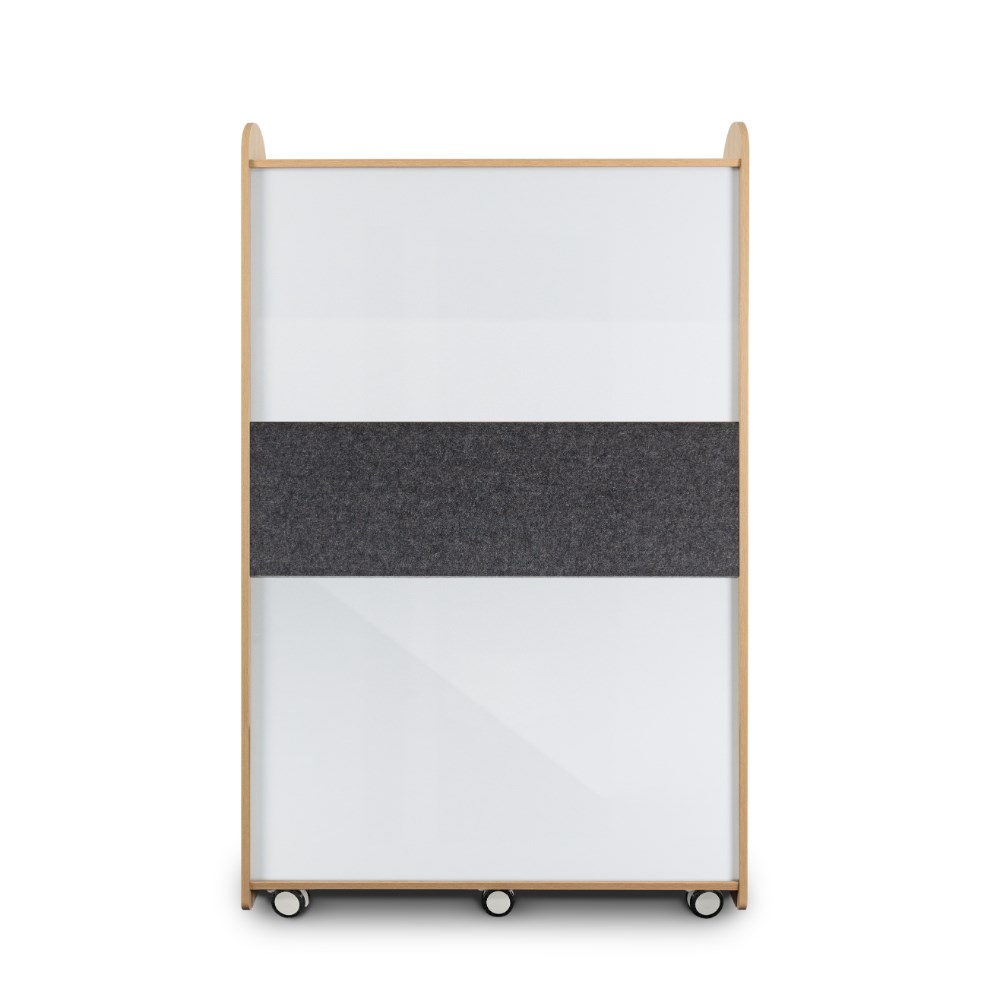2x Magnetically attached (removable) acoustic panel pinboards: 940(W) x 335(H) x 18(D)mm