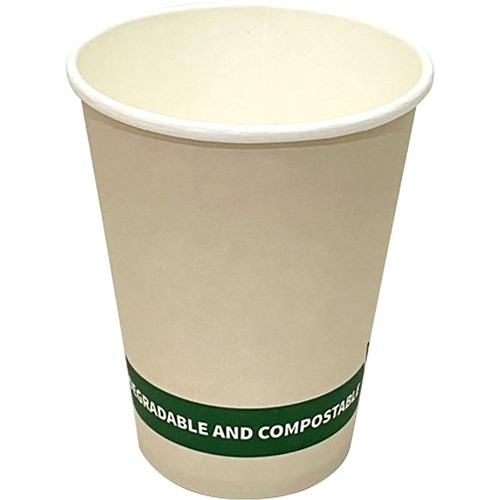 12oz (355mls) capacity, single-walled cups with a polylactic (PLA) bio-lining and 89mm diameter.