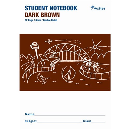 Writer Student Note Book 6mm Double Ruled 32 Page Dark Brown
