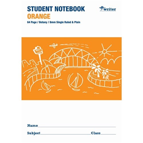 Writer Student Note Book 8mm Single Ruled & Plain 64 Page Orange