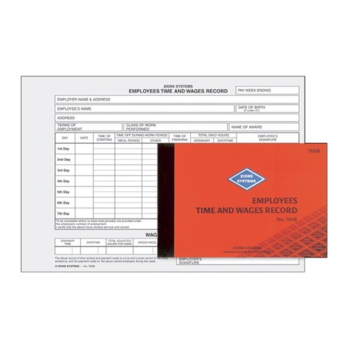 Soft covered, bound book, 55 time sheets, one sheet per week.