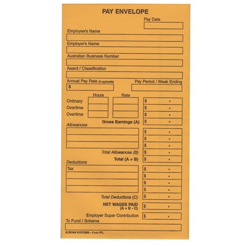 Employee details can be written in the allocated sections on the envelope.